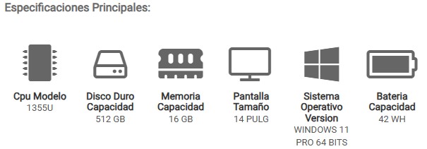 INTEL CORE i7 1355U HASTA 5.0 GHZ CACHE L3 12 MB |